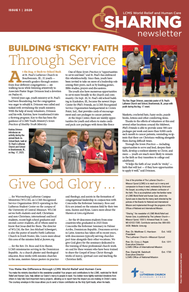 Thank you for your support of LCMS World Relief and Human Care. Visit lcms.org/mercy to learn more about the Synod’s mercy work.