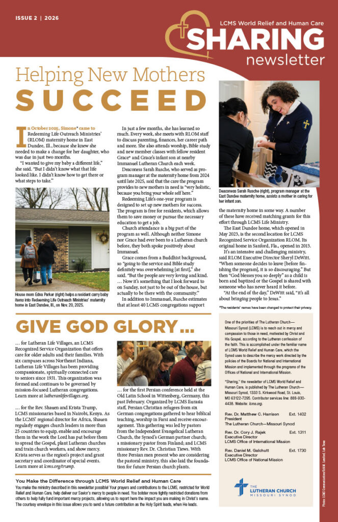 Thank you for your support of LCMS World Relief and Human Care. Visit lcms.org/mercy to learn more about the Synod’s mercy work.